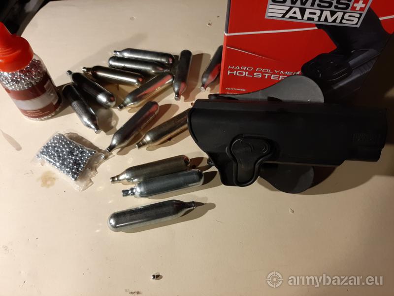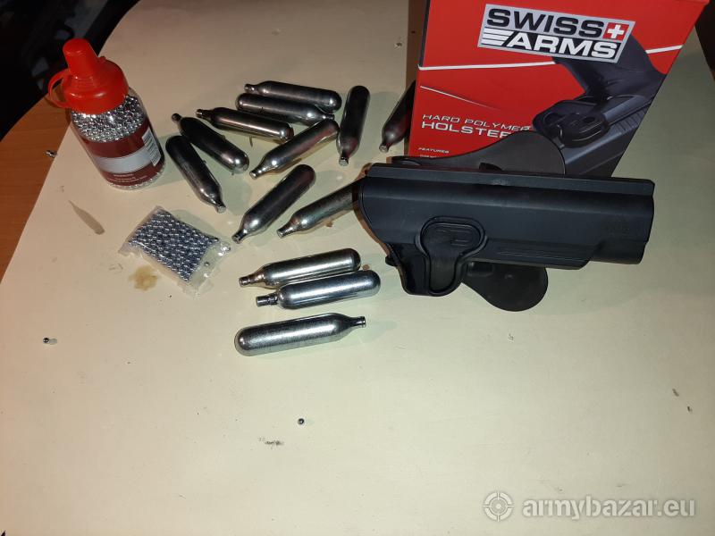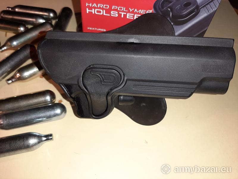 Opis: Wykonana z polimeru kabura obrotowa do pasa produkcji Cybergun&Swiss Arms. Jest lekka, a konstrukcja umożliwia szybkie montowanie. Pistolet leży w niej pewnie i nie wypadnie nawet podczas gwałtownych ruchów. Kaburę można regulować w zakresie 360 stopni. Dedykowana do pistoletów Colt 1911. Waga: 125 g Producent: CyberGun, Francja & Swiss Arms, Szwajcaria W gratisie dorzucam opakowanie 1500szt kulek metalowych cal.177 i 10 naboi CO2. Nr.tel. 530945424