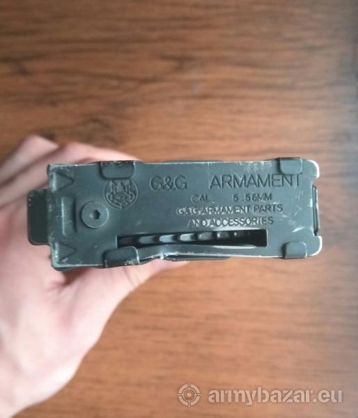Opis: Na sprzedaż używany, w pełni sprawny metalowy magazynek od G&G pasujący do replik z rodziny AR. Hi-cap o pojemności 500 kulek. Lekko wgnieciony przy zębatce, ale nie wpływa to na jej działanie. Możliwość odbioru osobistego w Warszawie. W przypadku wysyłki należy doliczyć 10zł do ceny. W razie pytań: 793214646