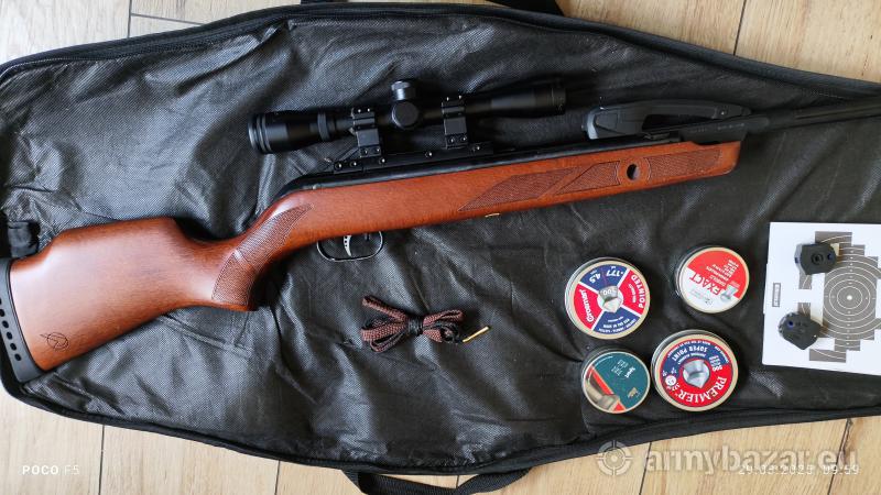 Opis: Cześć, Wiatrówka w bardzo dobrym stanie, łamana, 10strzałowa. W zestawie 2x magazynek 4x pudełeczka śrutu, kilka tarcz, wycior + luneta z montażem oraz oczywiście pokrowiec. Cały zestaw bardzo dobrze się trzyma, wiatrówka jest naprawdę dobrej jakości. Możliwa wysyłka lub odbiór osobisty. Wiatrówka poniżej 17kj Gdybym nie odbierał proszę o SMS