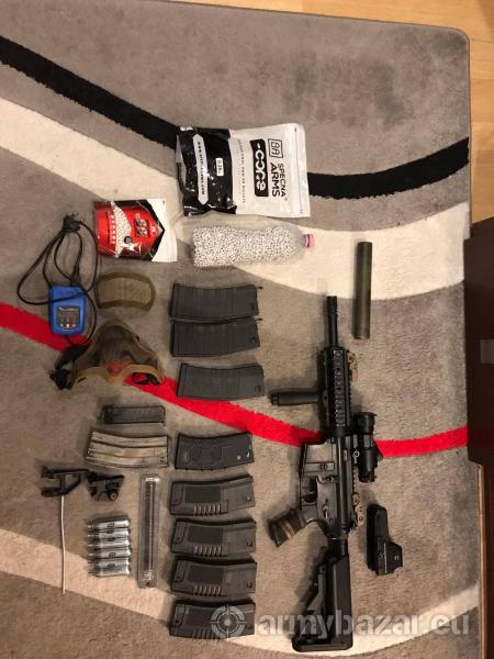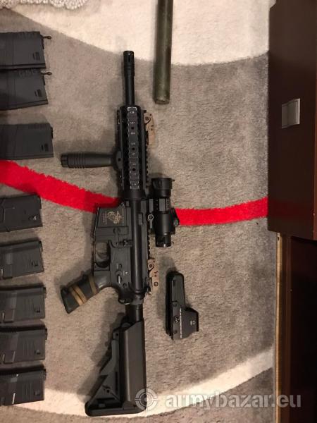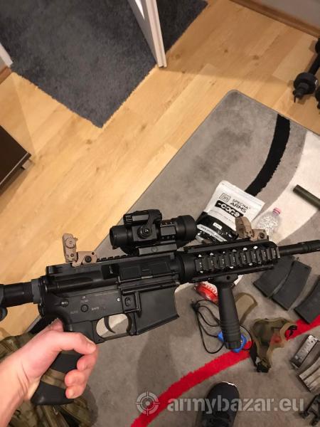 Opis: Witam Na sprzedaż leci karabin M4 firmy Specna Arms, replika była moją wierną niezawodną i główną repliką do strzelania. Sprzedaje tylko ze względu, że musze przerwać przygodę z ASG. Replika w środku ma wymienione części, głównie pod CQB natomiast zasięg strzału repliki pozwala na starcia miedzy budynkami oraz w lesie. Po więcej informacji zapraszam do napisania SMS bądź tel. To co widać na zdjęciu jest w komplecie po za EOTECHEM on jest osobno do kupienia w wysokości 170zł W wiadomości prywatnej opiszę wszystko dokładnie