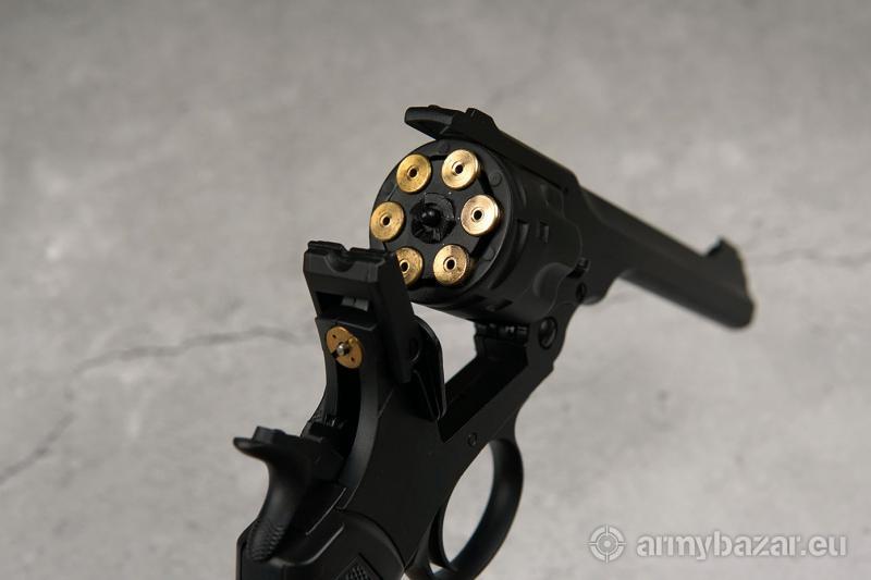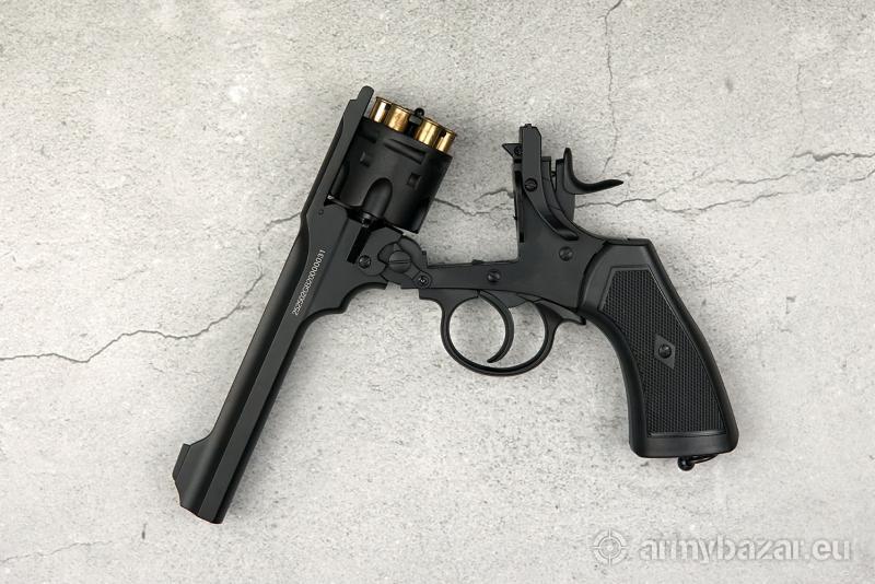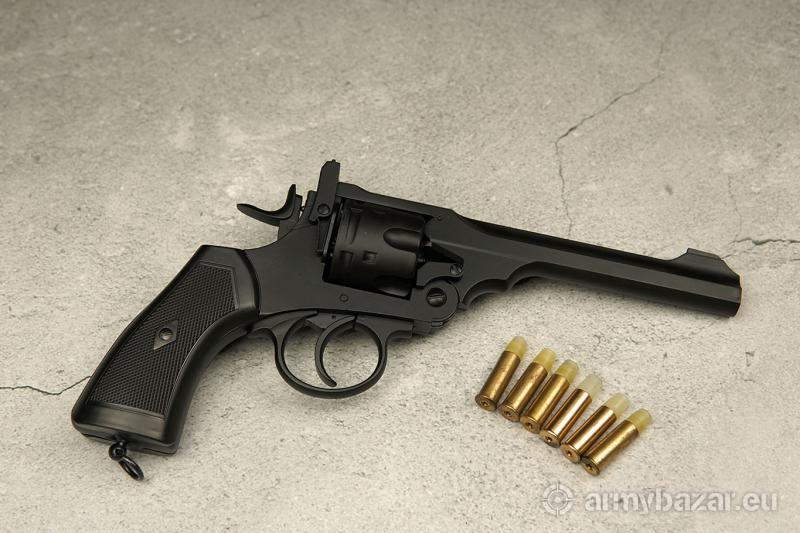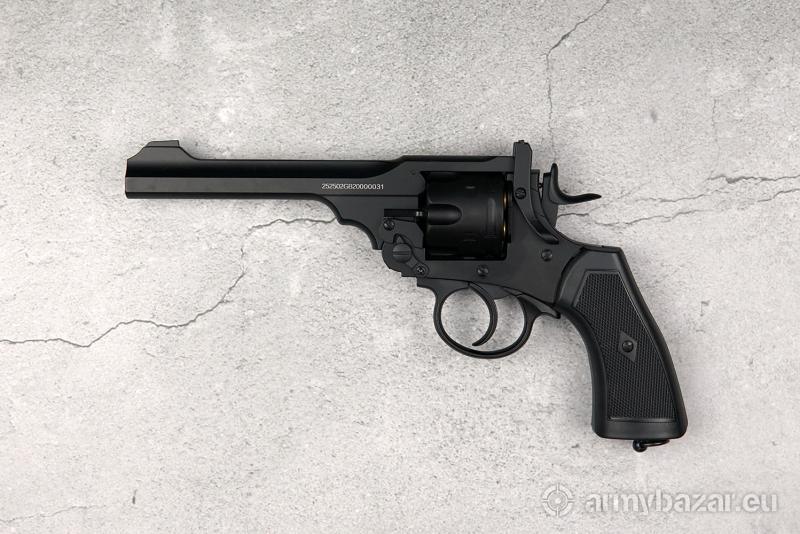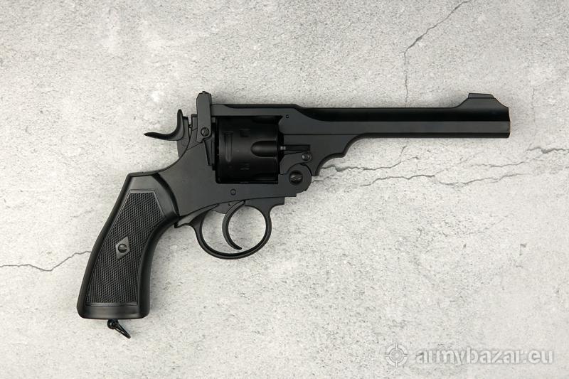 Opis: Słynny Webley, używany na początku XX wieku brytyjski rewolwer, który zagrał w kilkudziesięciu filmach jak i serialu Peaky Blinders. Pozostawał na wyposażeniu armii Imperium Brytyjskiego od 1887 do 1970 roku. Broń o łamanym szkielecie. Lufa wieloboczna, z listwą grzbietową, stanowi całość z przednią częścią ramy bębna. Zatrzask blokujący skonstruowany tak, aby w pozycji niedomkniętej uniemożliwiał przypadkowy strzał. Broń z mechanizmem spustowo-uderzeniowym podwójnego działania. Rewolwer napędzany CO2. Jedno ładowanie starczy na ponad 80 strzałów. możliwy odbiór osobisty w Poznaniu lub wysyłka paczkomatem (11 zł) bądź kurierem (16 zł).