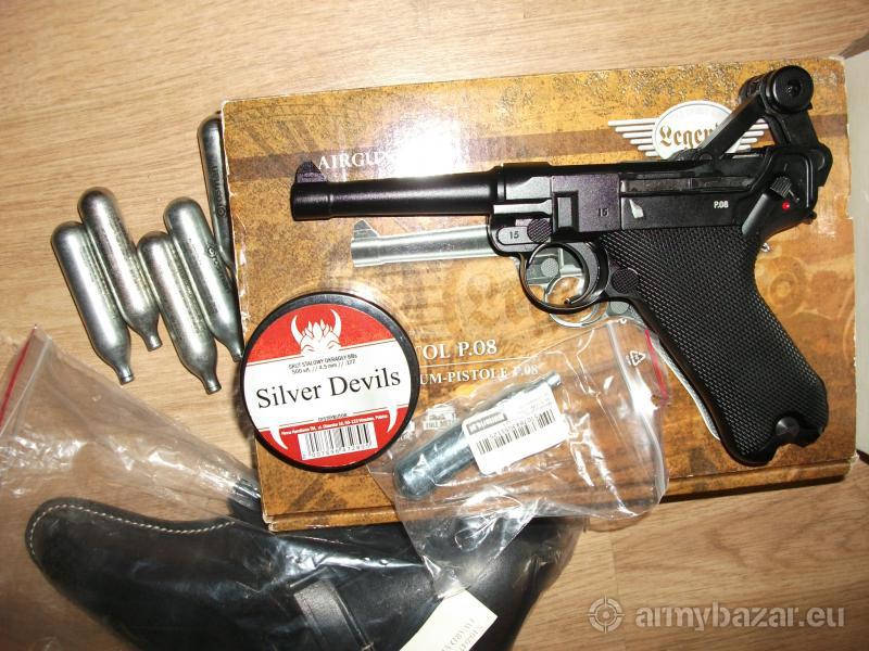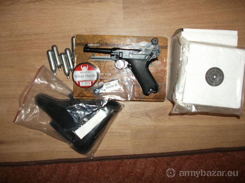 Opis: Luger w idealnym stanie,full metal,blow back,przebieg okolo 200 kulek+ dedykowana kabura(skora),kulki,kulochwyt+tarcze,kapsuly Co2.Odbior osobisty.