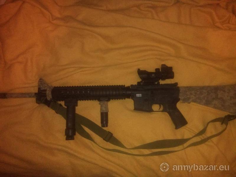 Opis: Witam, Dziś do sprzedania mam m16a3 G&P replika przeze mnie praktycznie nie używana, jedynie do celów wystawowych. Zakupiona w 2010 roku w ASG SHOP i tam również przeszła tuning mocowy. Obecnie ma 396~404 fpsy (sprawdzane na chrono).Replika ma zmieniony chwyt przedni na konwersję z risami oraz chwyt pistoletowy na MOE Magpull.Replika ma lekkie naturalne zabrudzenia (nie z warunków polowych)można je bardzo łatwo zmyć o ile zainteresowany będzie chciał to zrobić. Do repliki dorzucam 3 magi + 1 box elektryczny + pas nośny + chwyt + przedni chwyt z orginału + osłony ris Knights Armament+ chwyt transportowy Do repliki za dopłatą mogę dorzucić widoczny chwyt przedni z dwójnogiem oraz lunet