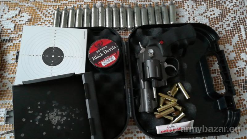 Opis: Sprzedam praktycznie nie używany rewolwer w pełnym ukompletowaniu z tarczami, kulochwytem oraz 17 kapsułami gazowymi i smarem do konserwacji zaworu gazowego. Wszystko spakowane w orginalnym kuferku bojowego Glocka. Rewolwer strzela śrutem BB i Diabollo. W razie pytań zapraszam do kontaktu na numer 570050526 :)