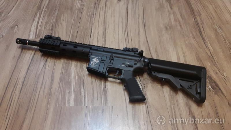 Opis: Replika SA-A09 od innych replik Specny (np. SA-B05) różni się tym, że jest cięższa nawet o 200 g (jeśli ktoś lubi realistyczną wagę, jak prawdziwej M4), jest lepiej spasowana, więcej elementów jest wykonanych ze stali. Replika została zakupiona na gunfire 24.01.2017r. co mogę potwierdzić na życzenie kupującego dowodem zakupu. W zestawie był magazynek, ładowarka, akumulator, wycior, oraz dodatkowa sprężyna. Replika generuje 420 fpsów na mocniejszej i 310 fpsów na słabszej sprężynie. Replika nie była na ani jednej strzelance. Wystrzeliłem tylko 1000 kulek (około 3 magazynków), strzelając do celów, więc nie ma mowy o żadnych śladach użytkowania. Po więcej informacji proszę o kontakt.