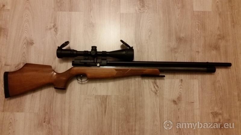 Opis: Wysokiej jakości karabinek PCP. Bardzo celny. Zadbany. W zestawie pompa ręczna wraz z podłączeniem. Luneta CenterPoint podświetlana dwukolorowo, ze zmienną paralaksą, powiększenie 4-16x. Na lunecie klapki osłonowe. Energia pocisku przekracza limit więc wiatrówka podlega rejestracji. Cena nie jest sztywna, można potargować..Wartość sklepowa tego zestawu to ponad 5000zł. Dodaję gratis porządny gruby myśliwski futerał do tego.