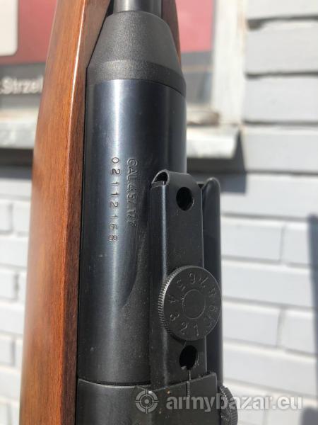 Opis: Dane techniczne: kaliber: 4.5 mm lufa: gwintowana prędkość początkowa: 265 m/s waga: 3.9 kg długość całkowita: 110 cm długość lufy: 44 cm spust: T06 blokada spustu